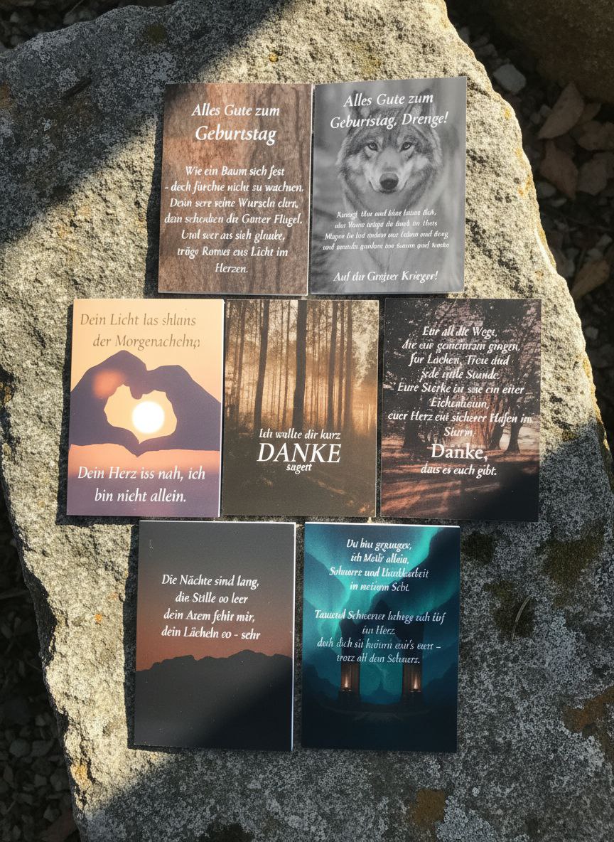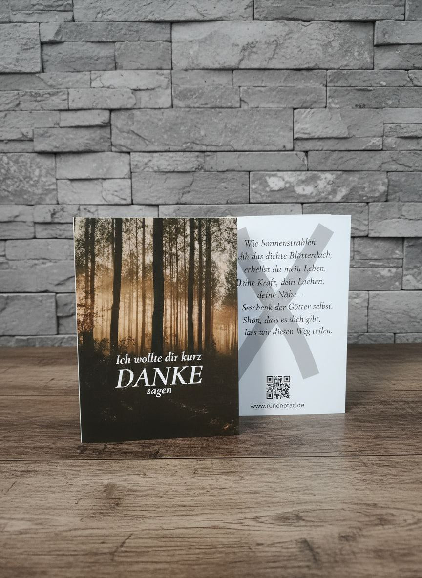 Dankeschön – hier findest du Worte, die berühren. Viele Karten sind mit Runen und passenden Versen gestaltet, die alte Weisheit mit moderner Poesie verbinden.
